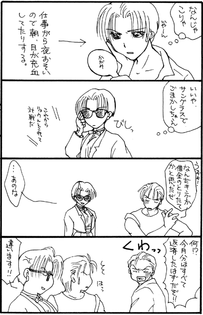 1、3コマ目→友人 2、4コマ目→私。で、ペン入れワタシです。 サカザキ家貧乏ネタは王道ですが ネタ的にも気にいってます。