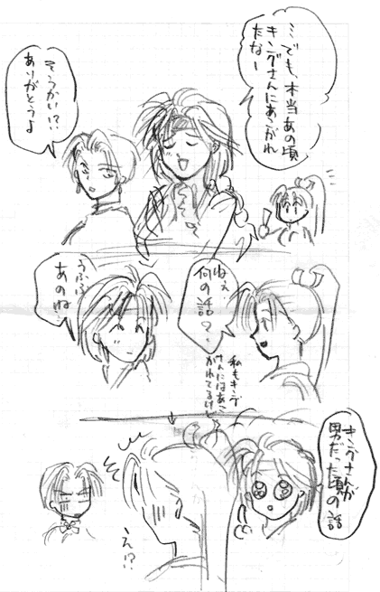 '95女格チームネタはけっこう描いてますが どれもキング偏愛率が高くてネタとしてどうよって感じなので 発表したのはほとんどねぇです。 コーナーの方向性としてこれからどんどん出てくると思いますけど。 手前味噌だけど1コマ目の舞ちんがお気に入り。